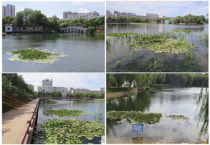 三湖公園位于津市城區孟姜女大道東側,車胤大道南側。三湖水面面積118000㎡。本工程實施前,由于存在污水滲漏以及暴雨期湖岸邊雨污水合流管網溢流的影響,三湖及氧化塘整體水質為劣V類,且水體中生態系統結構缺失,導致水體自凈能力極弱。